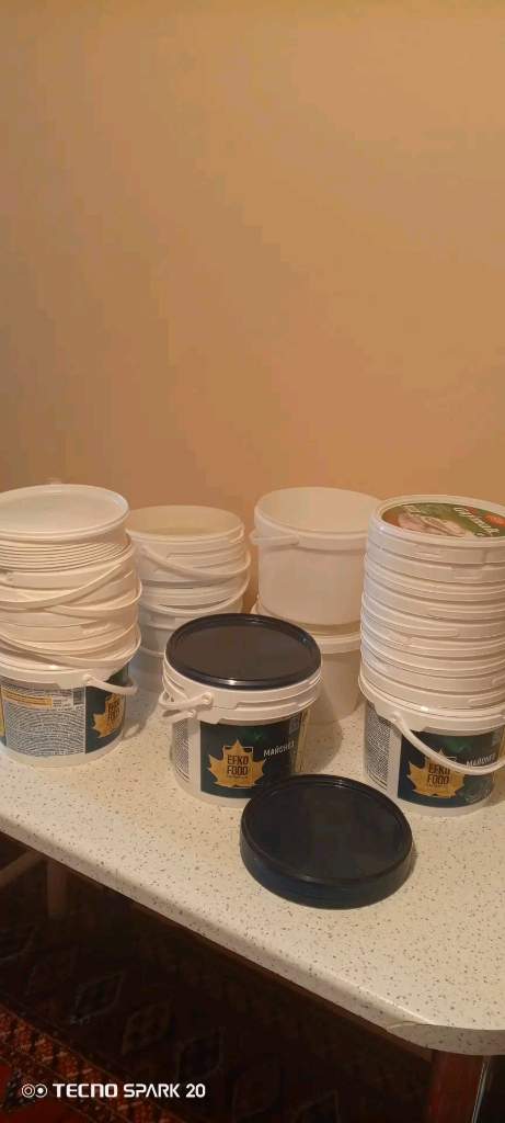 Ведро из под майонеза 3 кг. есть 35 штук цена за все 35 манат Можно как горшки для цветов..емкость для сыпучих продуктов