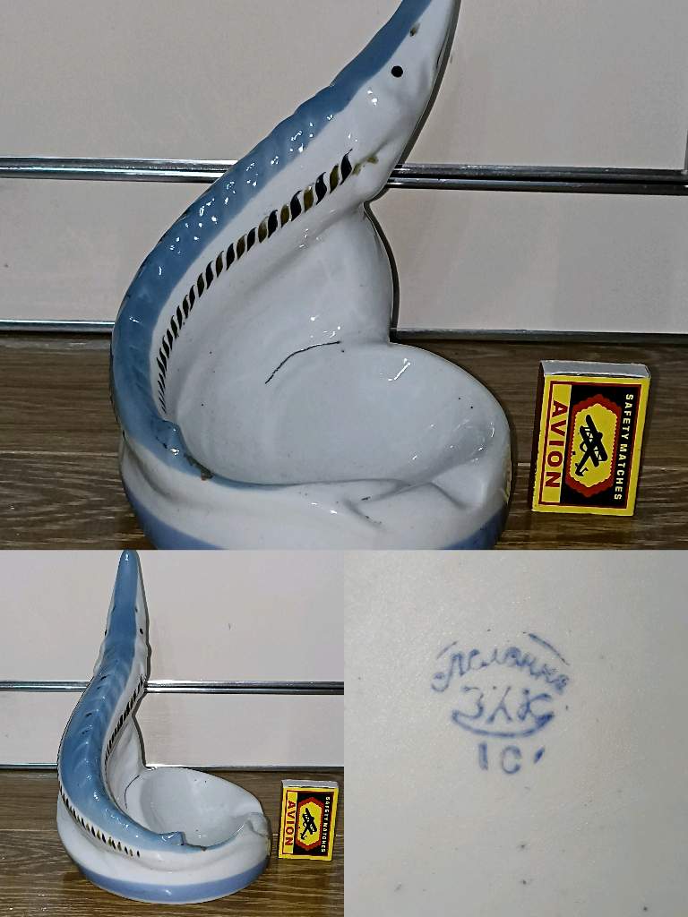РЕДКАЯ СТАТУЭТКА-ПЕПЕЛЬНИЦА СССР "ОСЁТР". 1950 г.г. XX века. ФАРФОР. РОСПИСЬ. АВТОР В.А МЕЛЬНИК. ПОЛОНСКИЙ З/д ХУДОЖЕСТВЕННОЙ КЕРАМИКИ. ОРИГИНАЛ. ЗАВОДСКОЕ КЛЕЙМО СОХРАНЕНО НА ДНЕ ИЗДЕЛИЯ. Цена ДОГОВОРНАЯ.