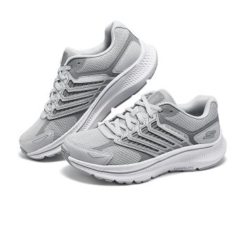 Skechers Женские кроссовки Skechers серии GO Twilight. Удобные и модные текстильные синтетические кожаные износостойкие поддерживающие повседневные кроссовки с низким берцем. Женские светло-серые.